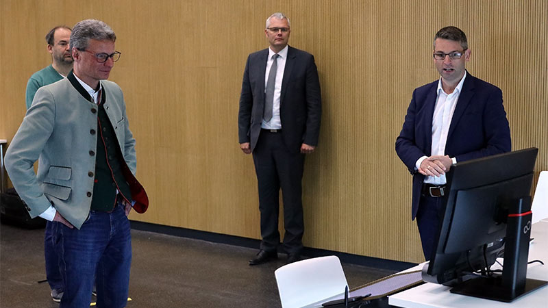 Wissenschaftsminister Bernd Sibler besucht Hochschule Landshut und lobt Hochschulangehörige und Studierende für herausragenden Einsatz in Zeiten von Corona.